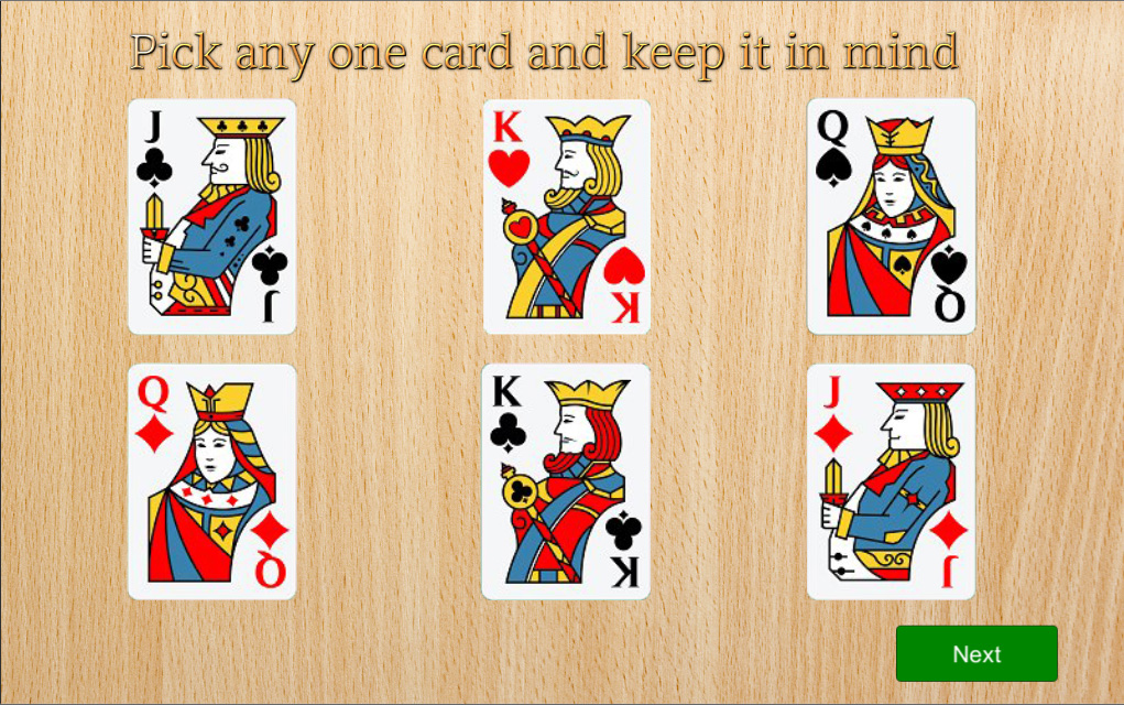 Impress your friends and family with this unique card magic trick. There are six cards to choose from. Ask your friend to choose any one of them and keep it secret. Also ask him to remember the card. On the next screen that card will be vanished. How’d the app know about their secret card. That’s magic. You can show this trick at a family gathering or to children and impress them. And as you are using this app you don’t have to carry a deck of cards with you. Install card magic reloaded app on your phone and the arrangements will be always with you.